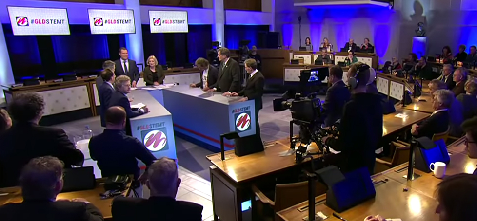 Om goed te kunnen zien hoe onze ontwerpen op scherm overkomen, hebben wij het debat voor u opgezocht. Via Omroep Gelderland het Gelders Debat, met wat ons betreft, de debat tafel in de hoofdrol.